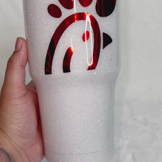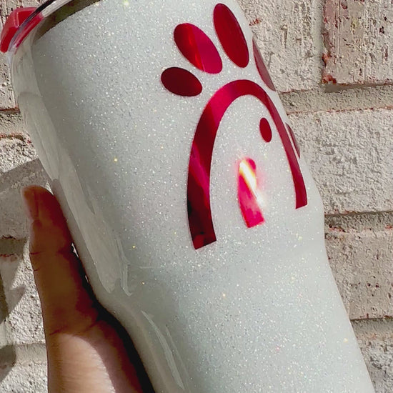 Stay hydrated in style with our Chick-fil-a 30oz Epoxy Stainless Steel Tumbler! This tumbler features a glittery epoxy finish and comes with a matching red accented lid, steel straw with silicone tip, and cleaner. With the ability to keep your drinks warm for up to 6 hours and cool for up to 8 hours, it's the perfect companion for any outing. Hand wash only for long-lasting use.