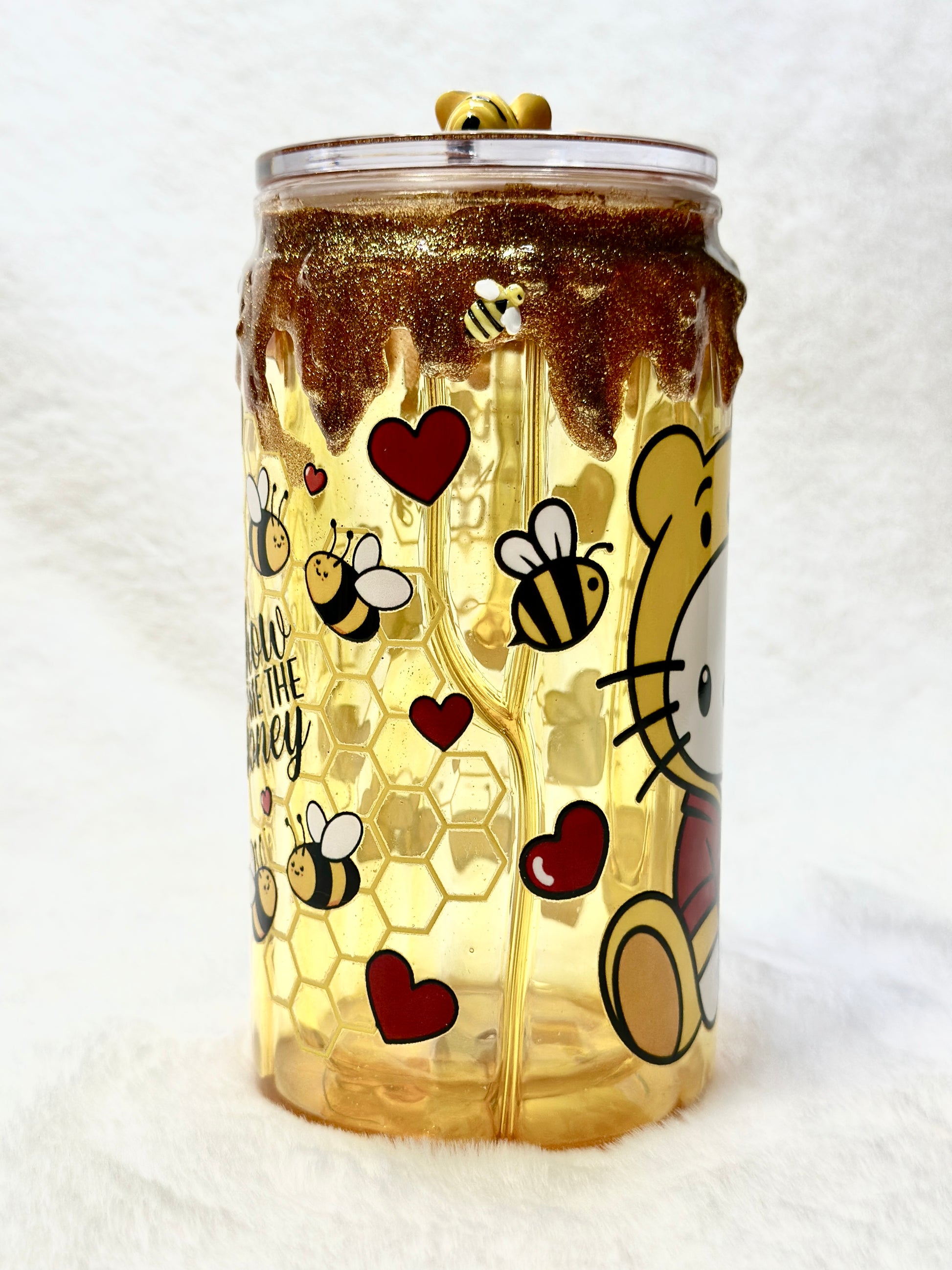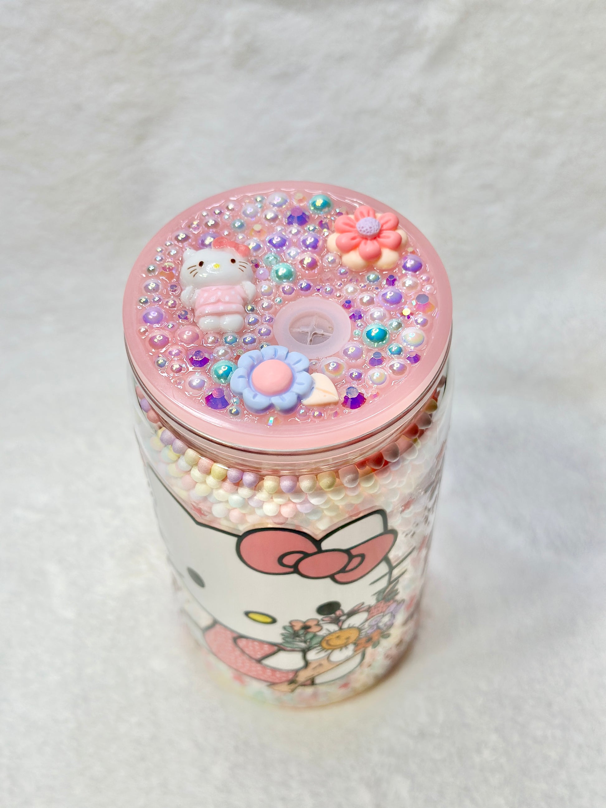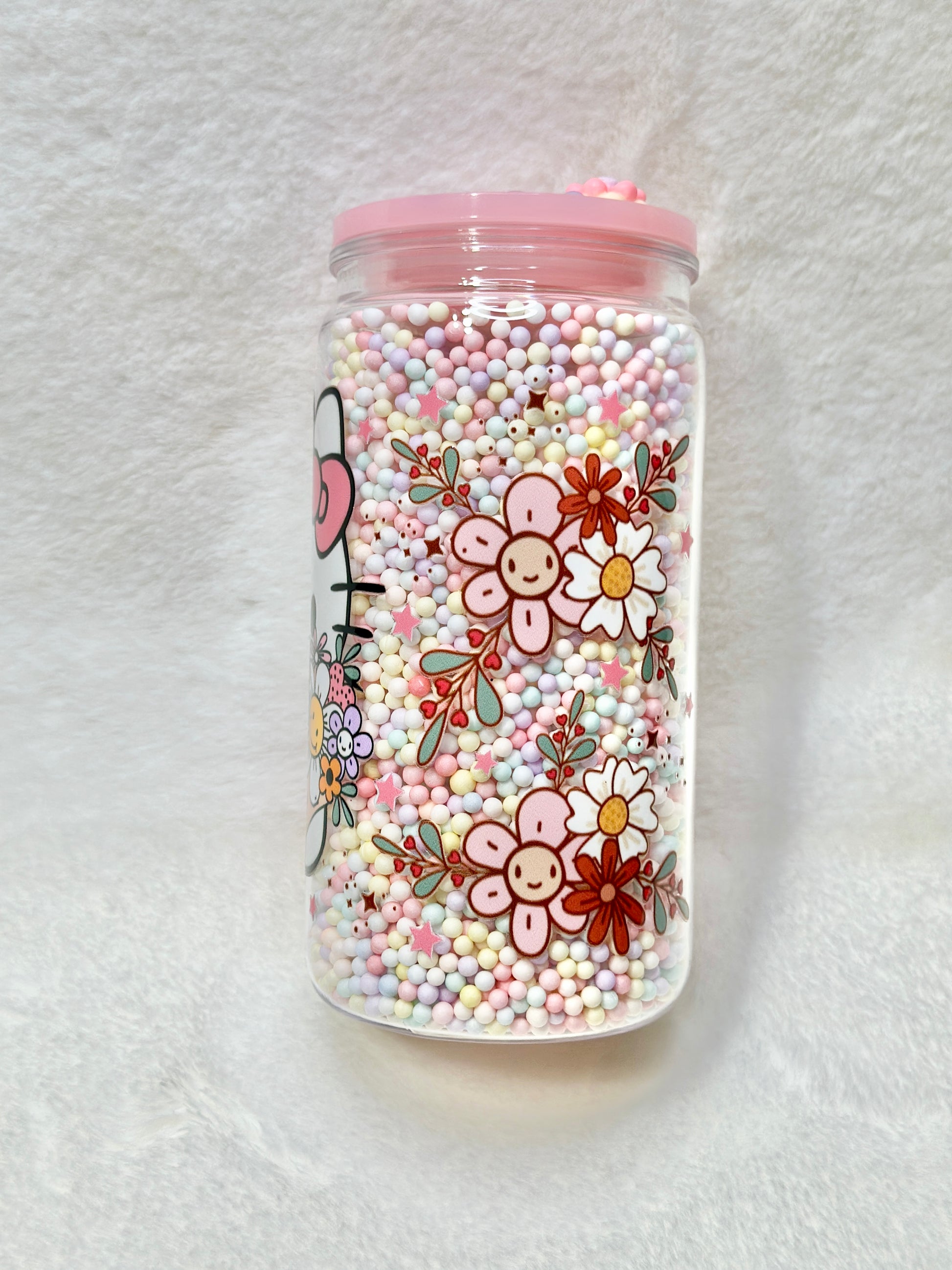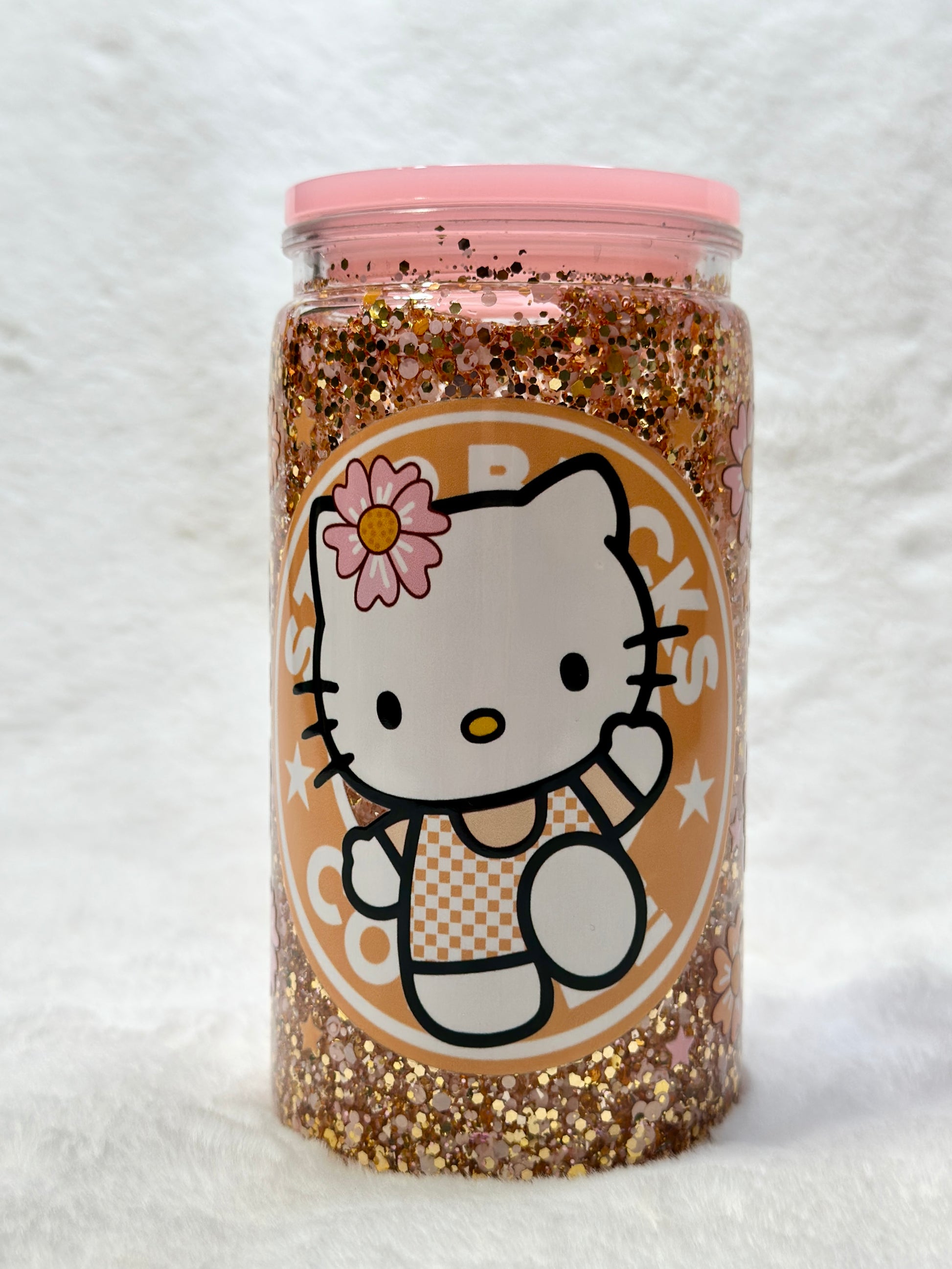 Bring your favorite beverage experience to life with our adorable Hello Kitty 16oz acrylic tumblers, each featuring a unique design that captures the charm of this beloved character. Choose from enchanting styles: a honey drip Hello Kitty dressed in a cozy Pooh outfit, a mesmerizing glitter snow globe design inspired by Starbucks aesthetics, or a delicate flower Hello Kitty filled with cute pastel-colored beads. Every tumbler comes complete with a matching straw, convenient straw cleaner, and a secure acrylic lid—everything you need for stylish sipping on the go. Perfect for daily use or as a thoughtful gift for Hello Kitty fans of all ages.